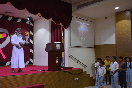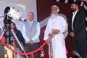The Chief Guest of the day Dr. Saleh Said Hamed Al Shidhani, Chairman, National team for Capacity Building, Space Science and Technology, Sultan Qaboos University and Ex-President, Oman Astronomical Society took the students on a virtual tour of the universe and the milky way galaxy. The special features of the earth were also explained .